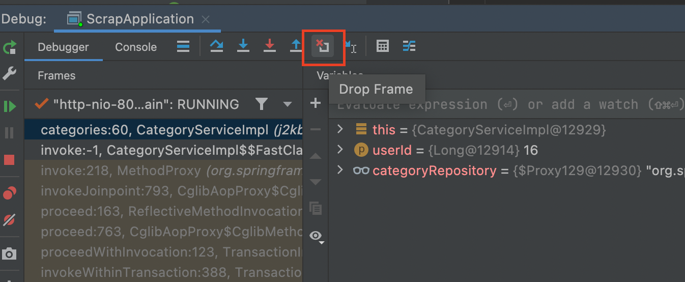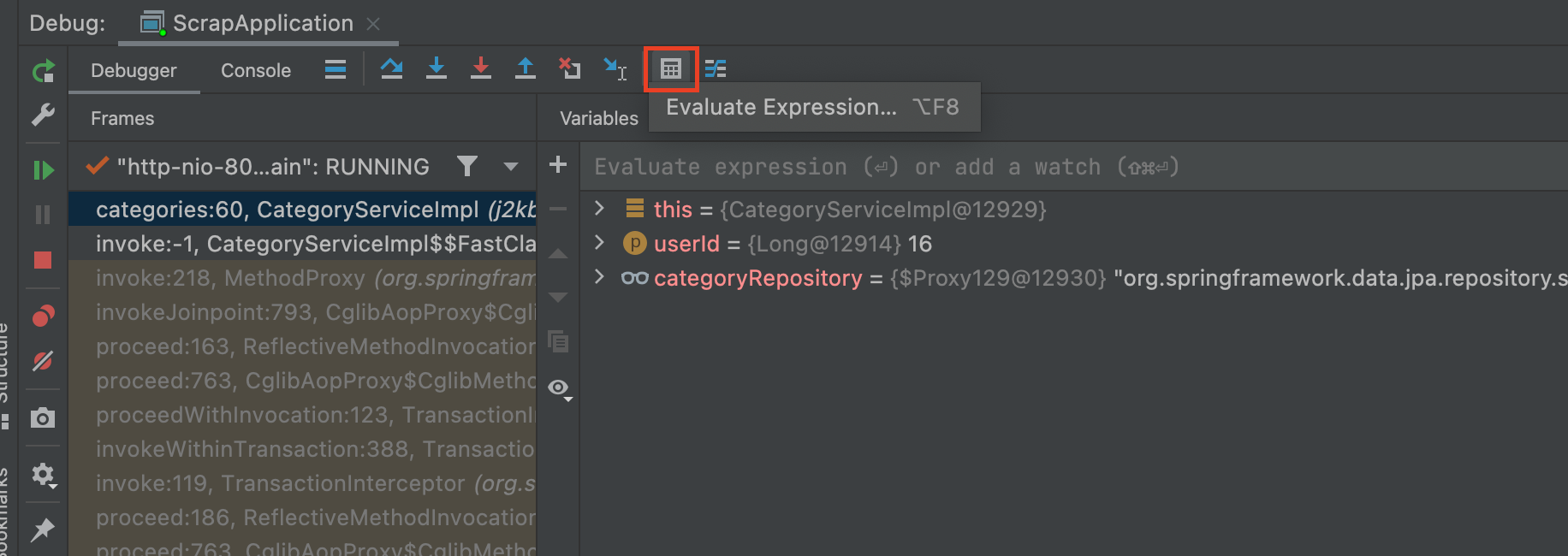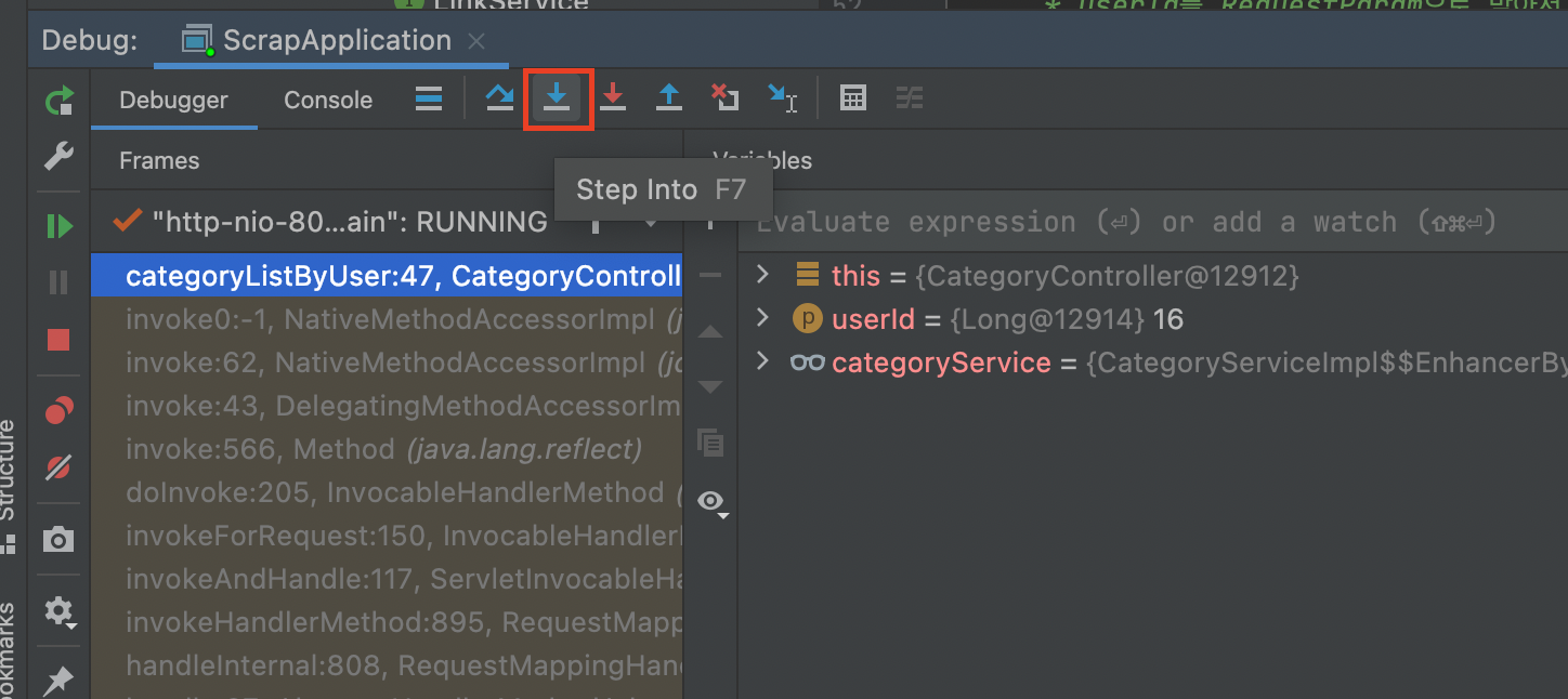 어떤 method call 안으로 들어갈 것인지 선택하면 된다.