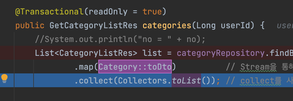Step Into를 누르면 아래의 화면과 같이 색이 나오는데 이는 색이 나오는 곳 중 어디로 들어갈 것인지 나타내는 색이다.