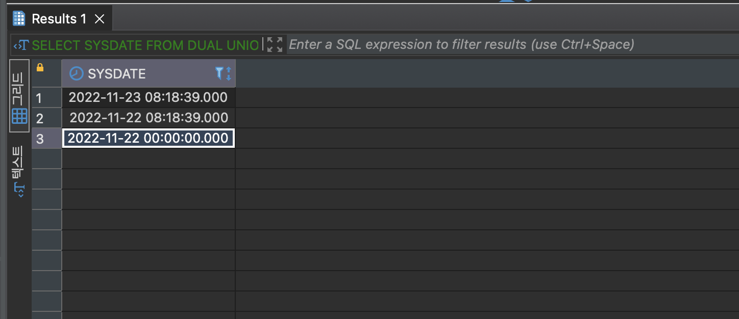 날짜 포맷을 연월일 요일 시분초로 변경한 쿼리문이다. TRUNC는 어떤 식으로 사용돼 나면 아래와 같은 쿼리로 많이 사용한다.