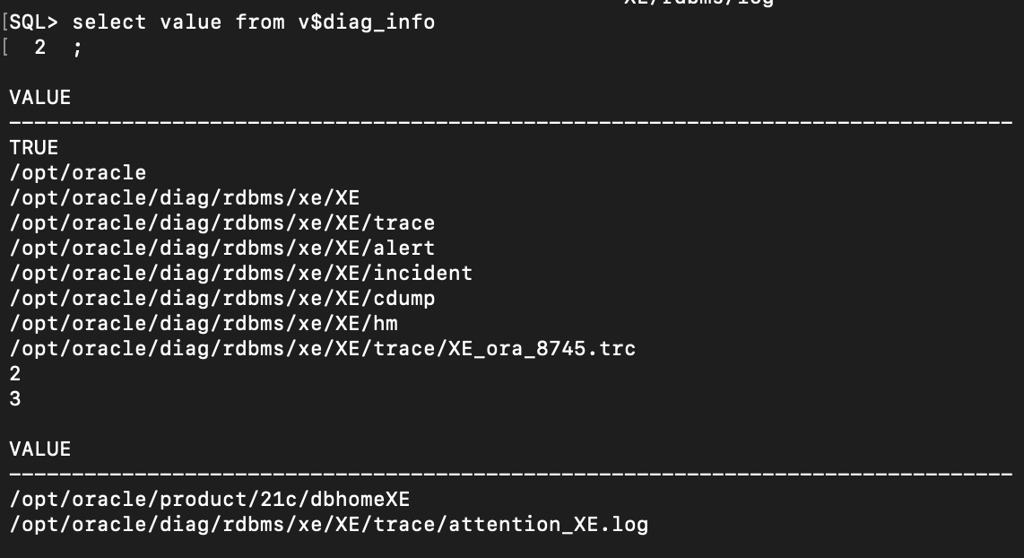 select value from v$diag_info;