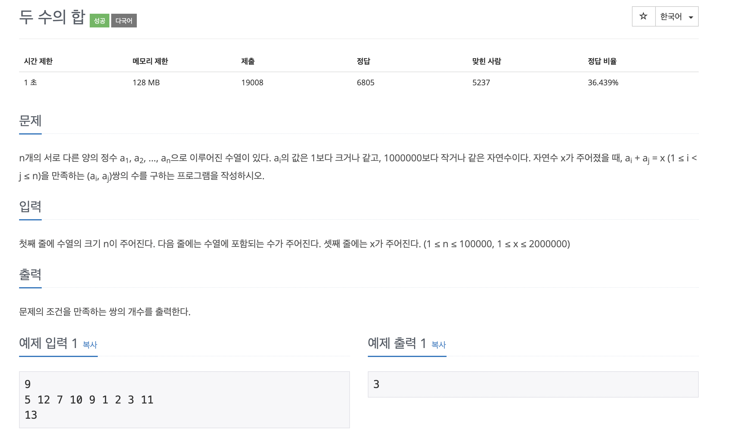 어제 풀었던 투포인터 알고리즘을 사용해서 풀면 쉽게 풀리는 문제였다.