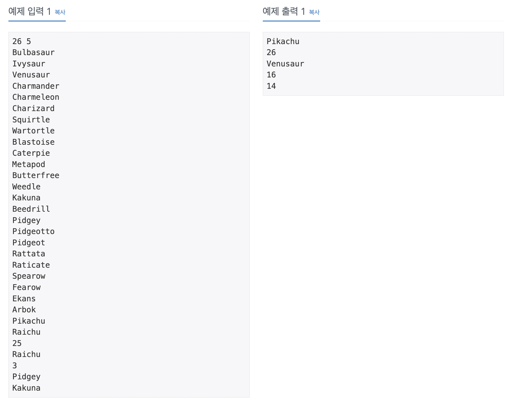 백준 1620번 나는야 포켓몬 마스터 이다솜