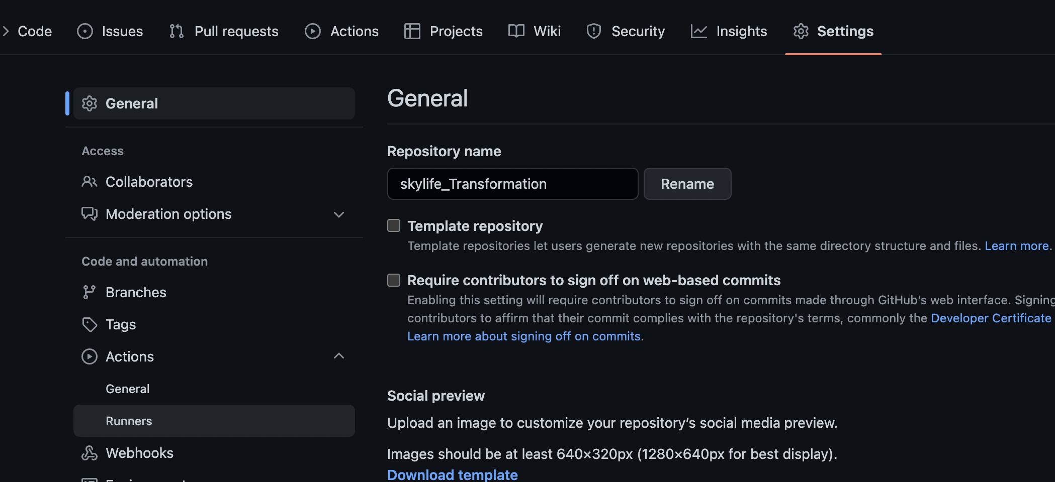 해당 Repository에 Settings에 들어가서 왼쪽 메뉴 Actions의 Runners를 클릭한다.