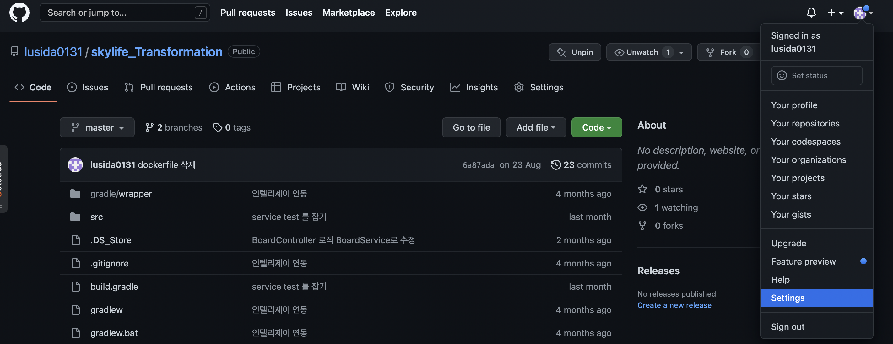 - 프로필 우측에있는 화살표를 눌러 Settings에 들어간다.