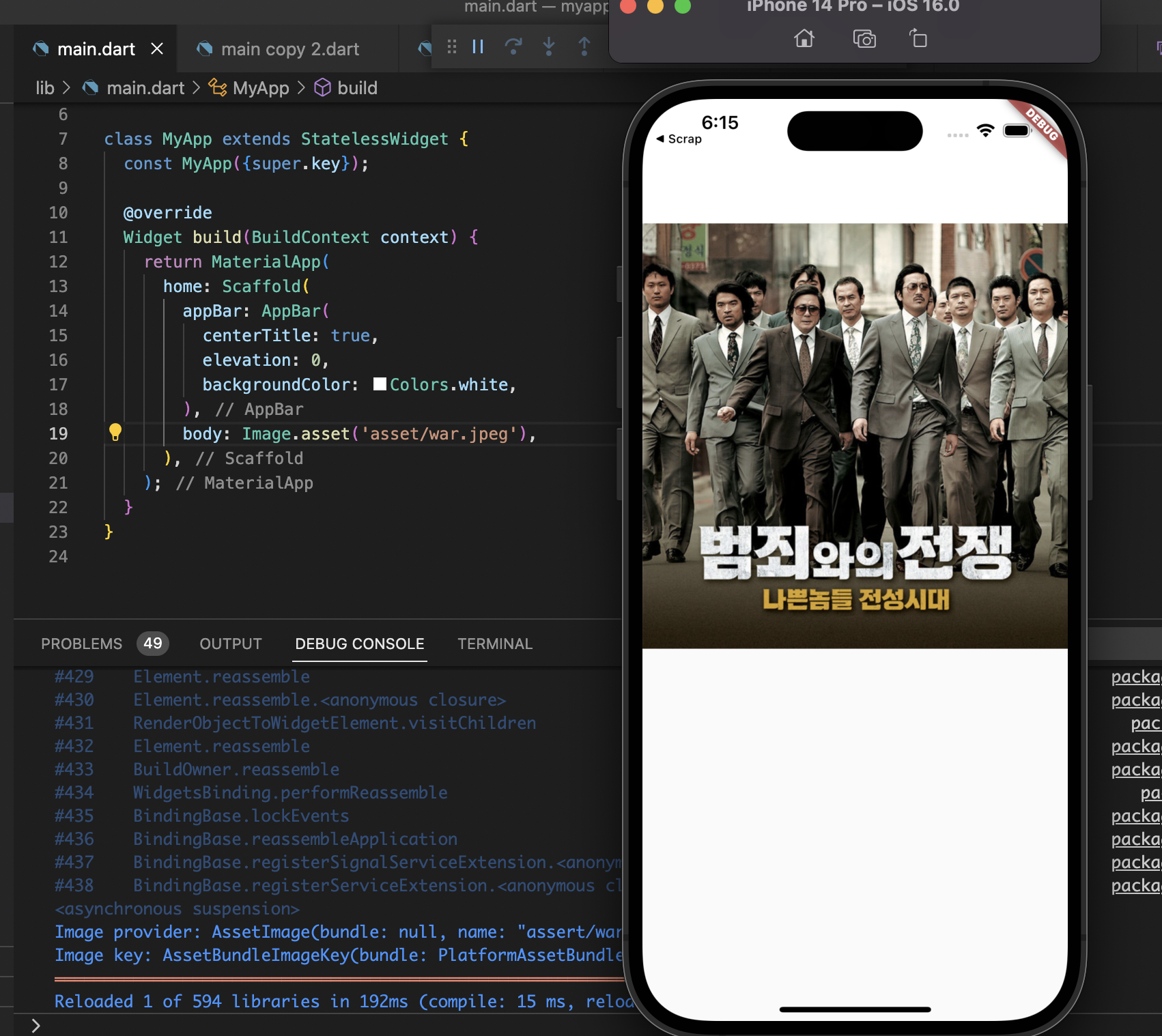 이제 등록한 경로를 넣어주시면됩니다. asset폴더 안에, war.jpeg를 사용하겠다 = asset/war.jpeg