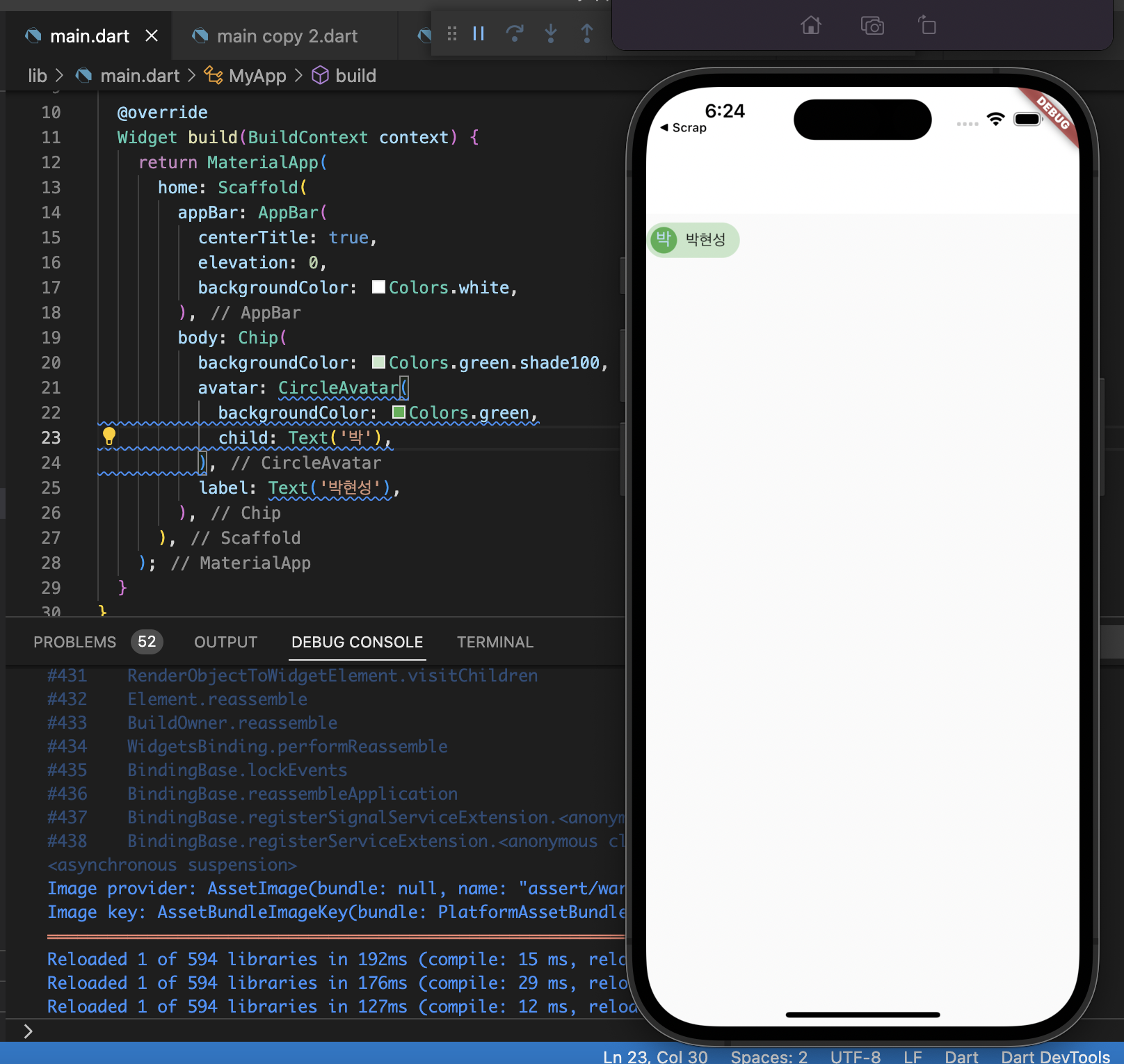Chip 위젯을 통해서 필터, 검색어, 선택 가능한 영역을 줄 수 있다. avatar 속성을 넣을 수도 있다.