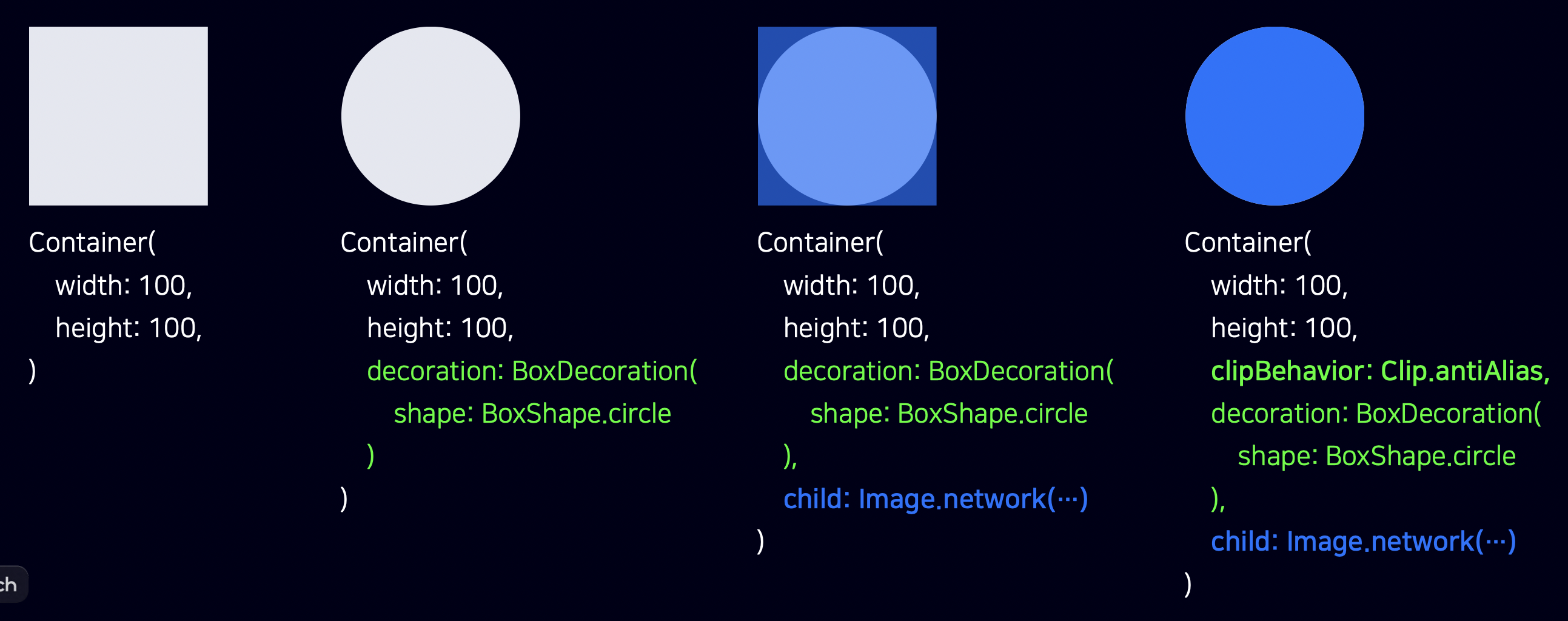 container의 기본 clip behavior를 생각하자. 자식은, 부모의 상황을 전부 알지 못한다. 특히, 부모의 모양을 모르기 때문에, Container의 모양에 맞게 범위에 벗어날 경우를 대비하여 자식이 범위 밖을 지나면 자동으로 잘라주는 clipBehavior를 설정할 수 있다.