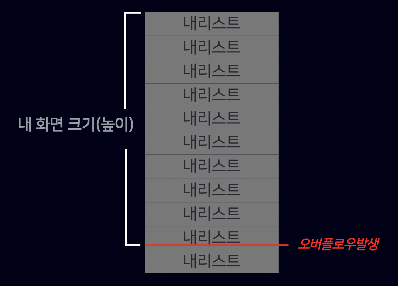 우리에게 스크롤 기능을 주는 ListView는 수직으로만 사용했는데, 우리가 주는 속성 값에 따라 수평으로도 사용이 가능하다. 기본값의 스크롤 방향이 수직으로 설정돼있던 것이다.