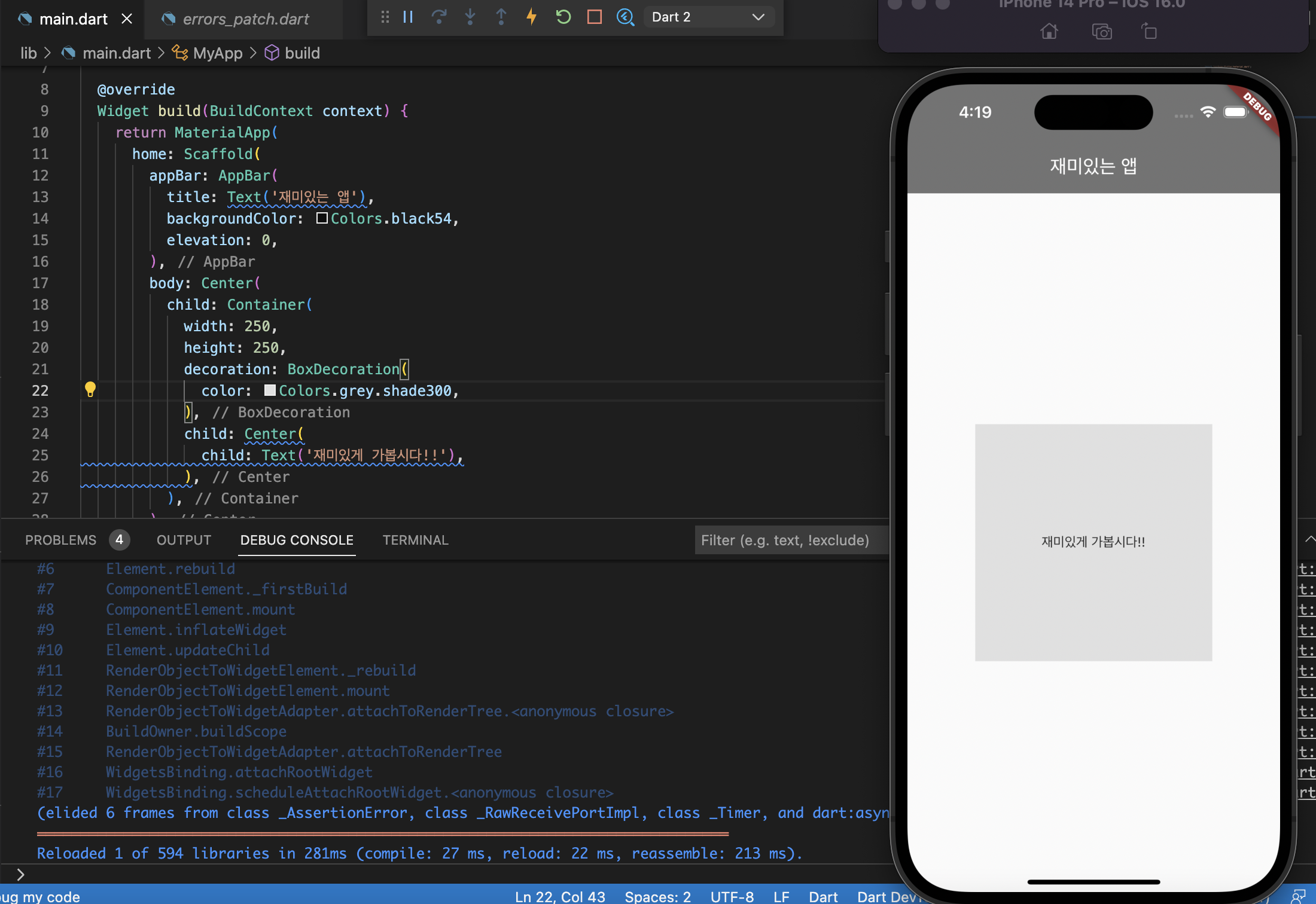 | Flutter 두 번째 강의 내용 (0) | 2022.10.20 |