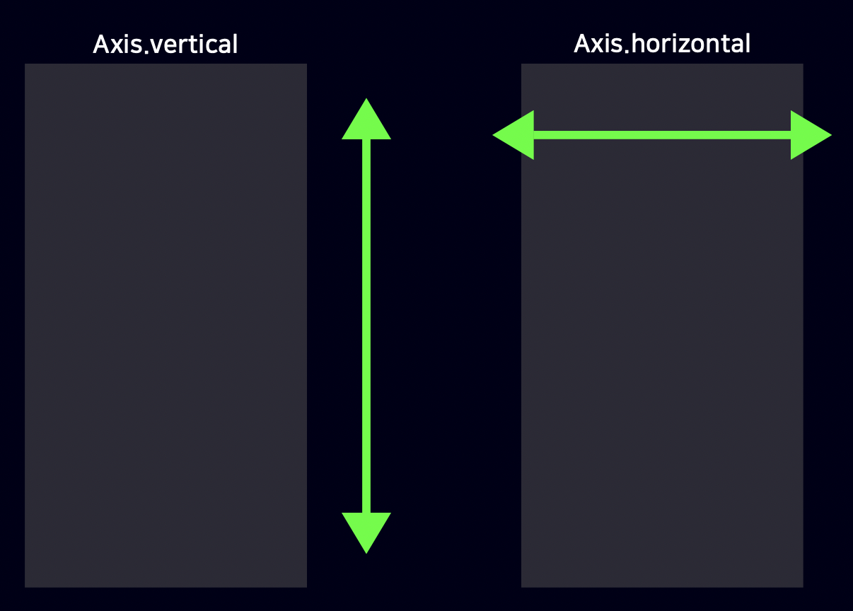 중심, 회전축의 뜻을 가지고 있는 Axis, ListView에는 scrollDirection 속성을 설정할 수 있는데, 요구되는 데이터 타입이 Axis이다.