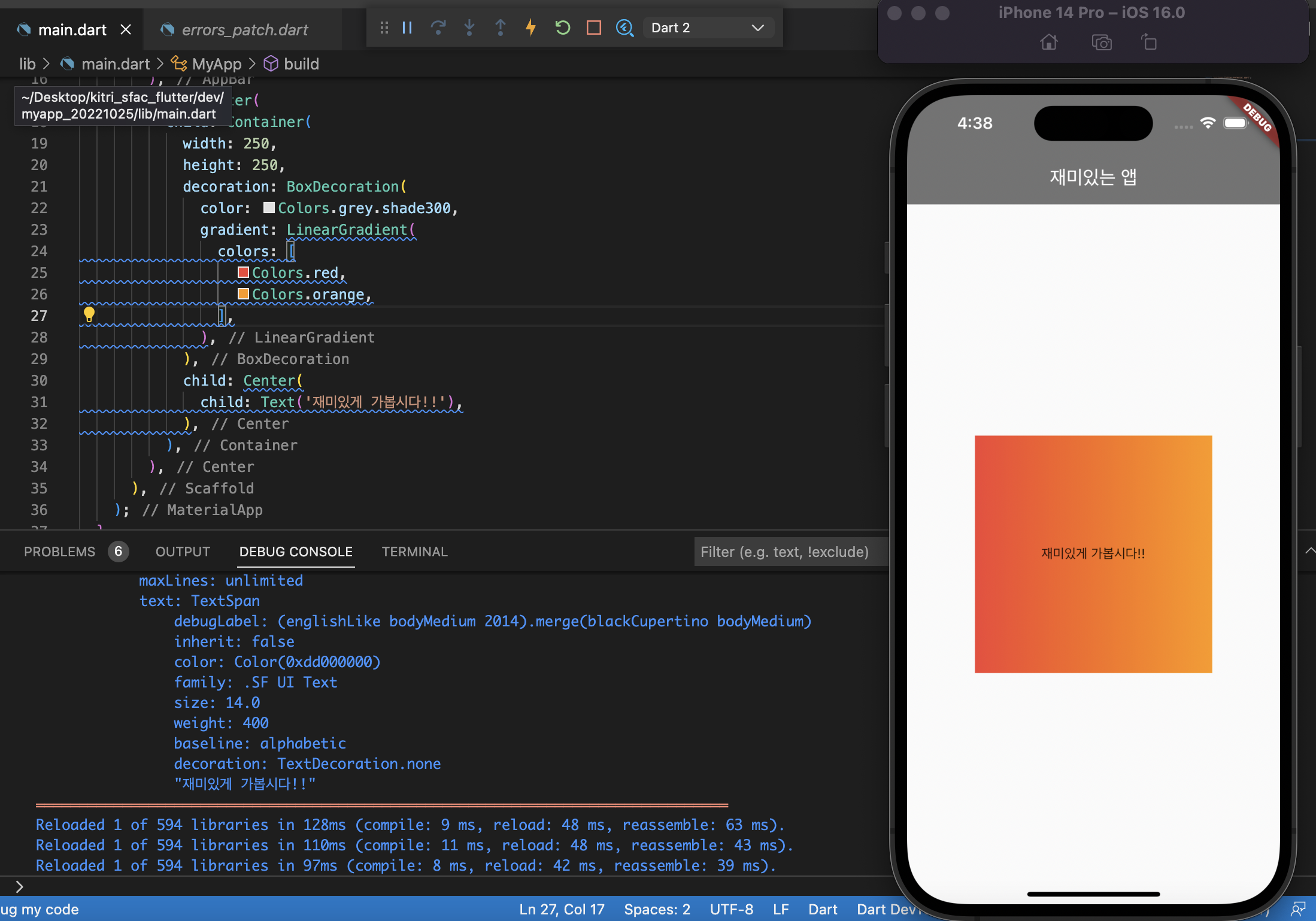 child: Text('재미있게 가봅시다!!'),