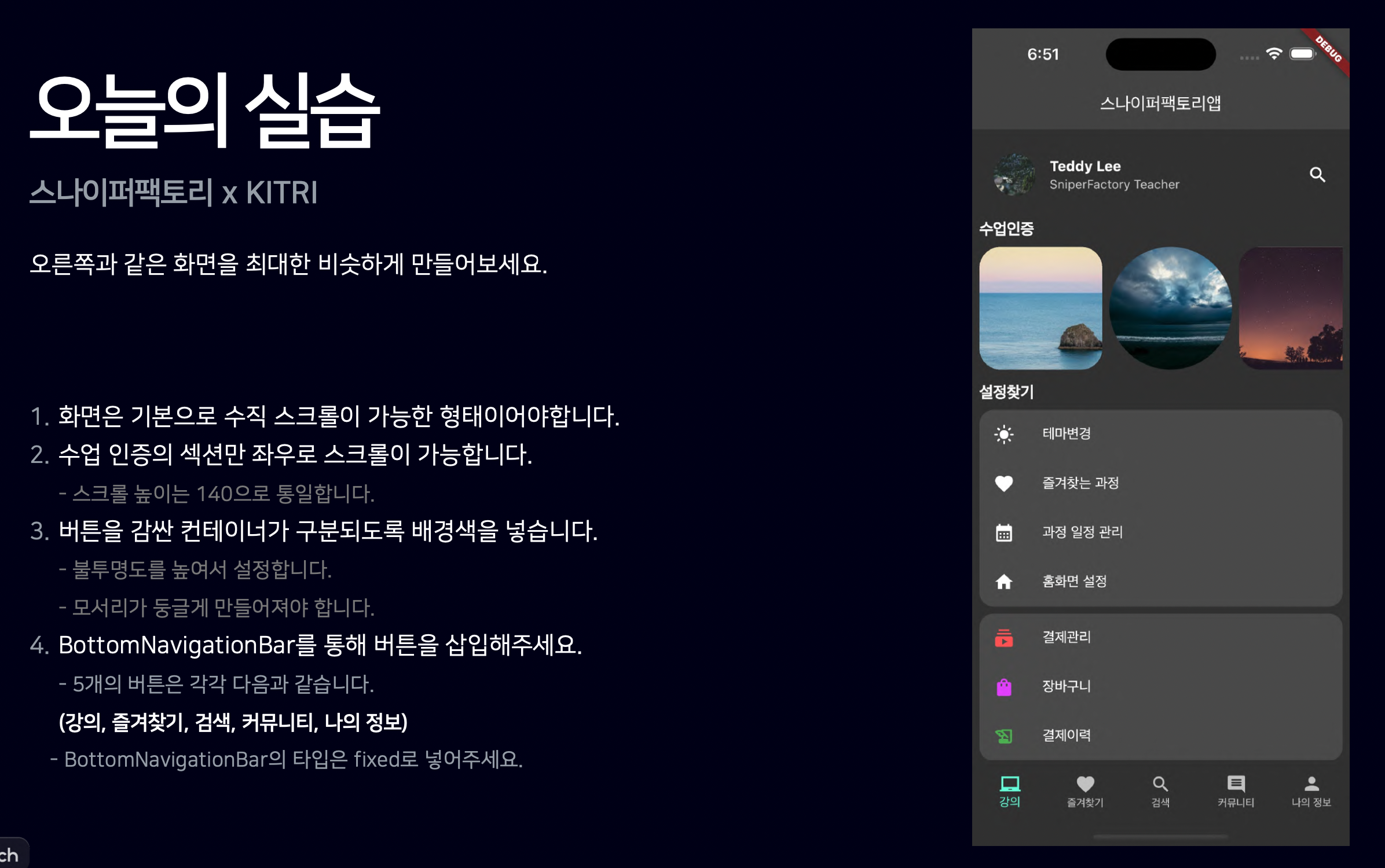title: Text('스나이퍼팩토리앱'),